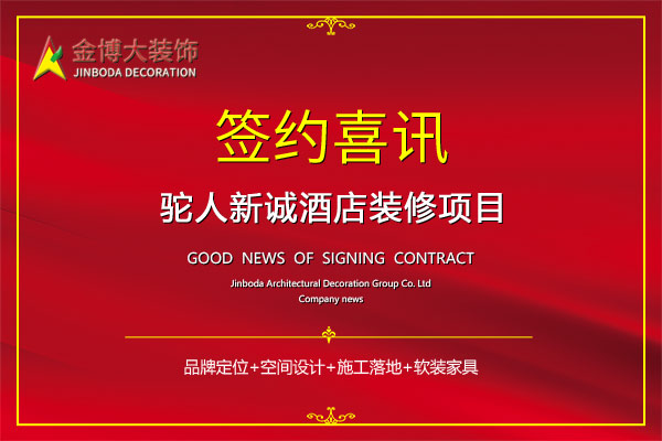• 簽約|賀金博大裝飾簽約駝人集團(tuán)新城國(guó)際酒店裝修項(xiàng)目