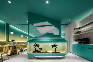 椰客YECO位于廣州領(lǐng)展廣場(chǎng),旨在延續(xù)椰客清新自然的氛圍,實(shí)現(xiàn)自由、新鮮、流動(dòng)的空間,是本案火鍋店裝修設(shè)計(jì)所思考的首要問(wèn)題。設(shè)計(jì)師忖量著椰客品牌文化記憶,提取椰客LOGO從平面到立體結(jié)構(gòu)轉(zhuǎn)換,并運(yùn)用折紙?jiān)O(shè)計(jì)概念,通過(guò)曲面點(diǎn)線的布局到餐廳門頭造型中,貼合當(dāng)下語(yǔ)境,以海島綠植帶與沖浪板裝置植入,模擬了海島自由愜意的度假風(fēng)光......